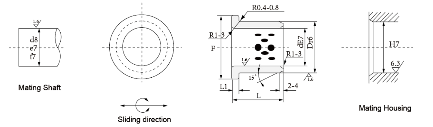 | JDB-3 | O material do lado interno dos produtos da série JDB-3 é o mesmo da série JDB-2. para que pudessem funcionar tão bem quanto os da série JDB-2. em adicional. Eles têm outras vantagens, como economia de custos de material, melhoria da resistência à compressão e podem ser montados soldando a superfície da bucha junto com outra matriz. São adequados para peças que não necessitam de lubrificação com óleo de máquinas de construção, máquinas metalúrgicas e máquinas de transporte. |